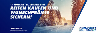 Für den Kauf eines Satzes Falken Winter- oder Ganzjahresreifen (4 Stück ab 16 Zoll, LKW-Reifen ausgenommen) schenkt Falken Ihnen eine Aral